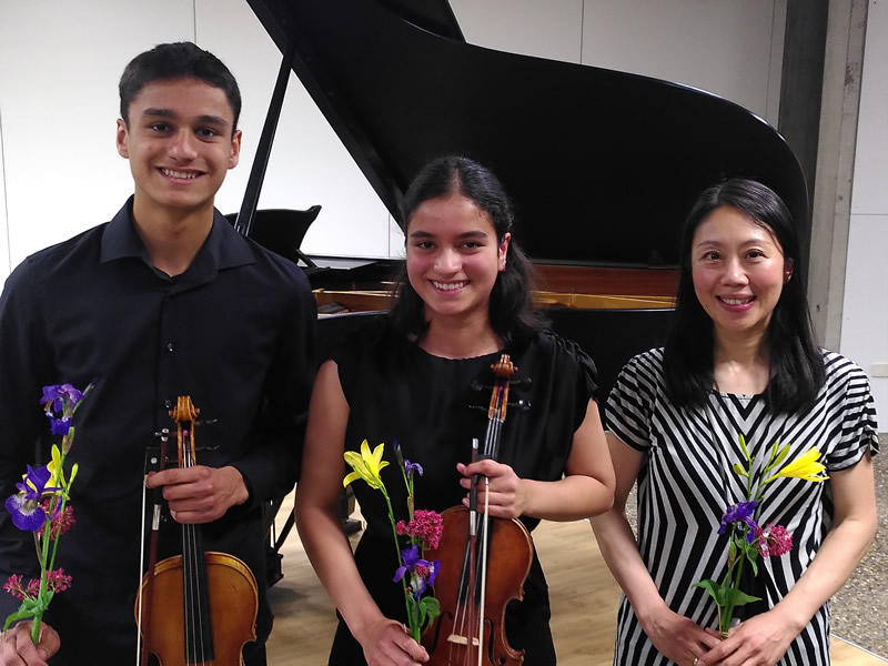 Wer es am Montag, dem 2. Juni zum Kammermusikabend ins PMHG geschafft hat, wurde reich belohnt: Vor einem handverlesenen Publikum spielten Benjamin (JS 1) und Lavinya (Abi 2024) Kabatnik das Programm, mit dem sie sich beim Landeswettbewerb „Jugend Musiziert“ für die Teilnahme am Bundeswettbewerb qualifiziert hatten. Solistisch mit Werken von Ysaÿe und J.S.Bach, am Flügel begleitet von Reimi Kühndorf-Matsuda mit Kompositionen von Beethoven, Lalo und Mendelssohn, zeigten die beiden ihr technisch und musikalisch außerordentlich beeindruckendes Können auf der Violine. Die Jury des Bundeswettbewerbes in Wuppertal würdigte nun Lavinya mit einem 2. und Benjamin mit einem 3. Bundespreis. Wir gratulieren den beiden ganz herzlich zu diesem herausragenden Erfolg! (Wl)