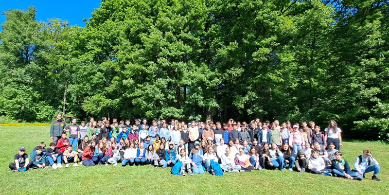 Am 15. Mai 2025 begrüßte Revierleiter Jonathan Sachs vom Forstrevier Leinfelden-Echterdingen unsere Schülerinnen und Schüler der Klassenstufe 6 auf der Spielwiese. Für unseren Aktionstag informierte er zum Erstaunen vieler, dass die Rechte und Pflichten in einer Demokratie auch für den Wald gelten. In Deutschland haben alle ein Waldbetretungs-recht und jeder darf beispielsweise Pilze und Beeren für den Eigenbedarf sammeln. Gleich-zeitig gelten aber auch klare Regeln und Gesetze und jeder trägt Verantwortung, dass Wald-bewohner und Waldbesucher miteinander klarkommen. Die Schülerinnen und Schüler zogen dann in Kleingruppen und mit großen blauen Mülltüten ausgestattet durch den Wald rund um die Spielwiese. Die Ausbeute unserer Müllsammelaktion war (leider) beträchtlich. Die Schüle-rinnen und Schüler zogen nicht nur einen 4m langen Teppich, eine komplette Holzpalette, mehrere Regalbretter und ca. 100 Glasflaschen aus dem Wald, sondern füllten ihre Säcke auch mit unzähligen Taschentüchern, Zigarettenfiltern, Kronkorken und Glasscherben, die vor allem den Tieren im Wald gefährlich werden.